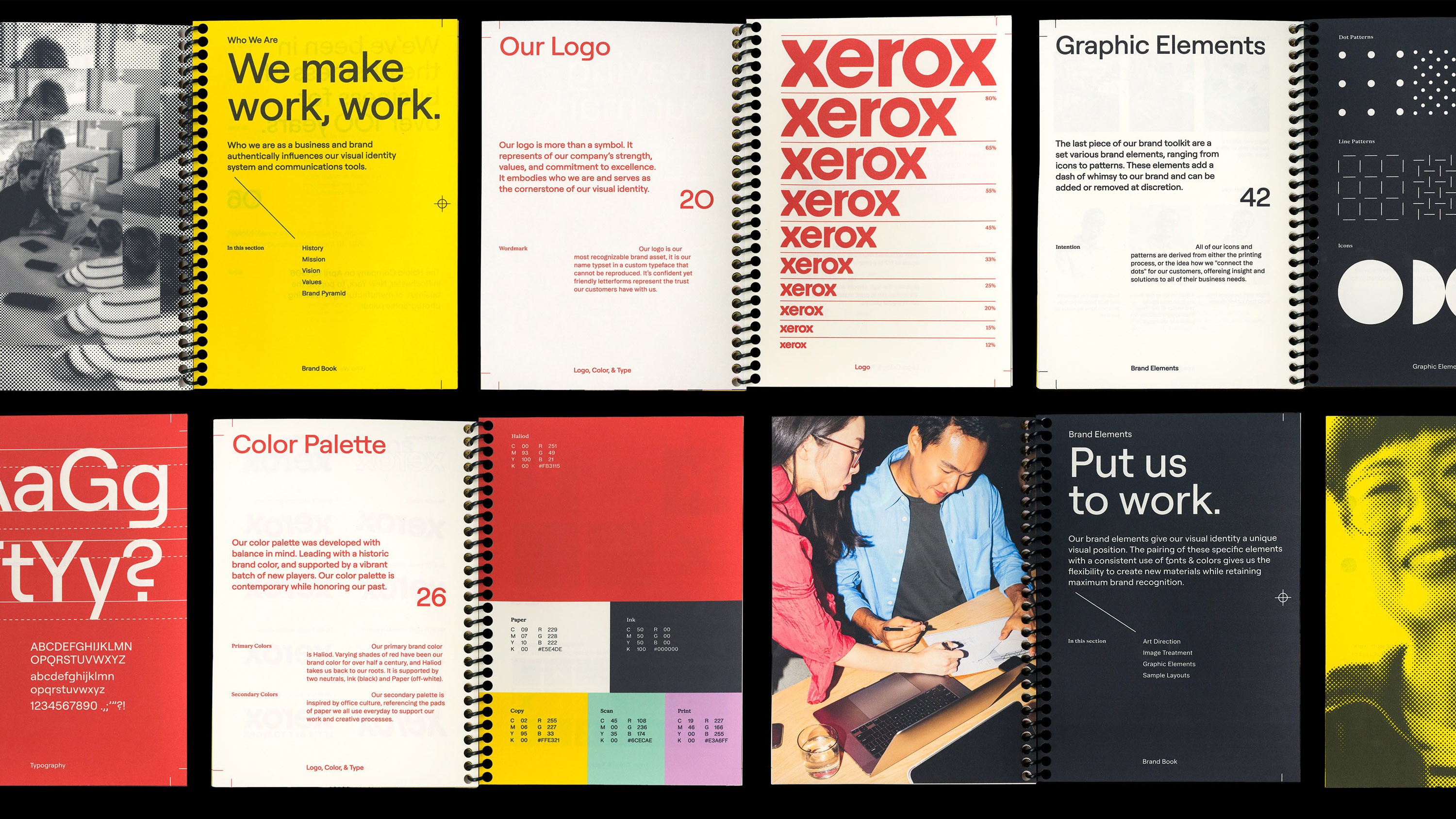 While this rebrand was focused on repositioning Xerox for the future, I still wanted to honor their legacy by leaning into printed matter. I developed a stationary system and physical brand guidelines publication that takes design cues from printer details and marks.